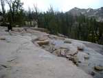 Heading back across the (wet) rock slabs toward Imogene Lake.